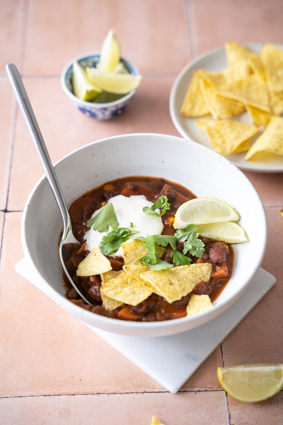 Herhjemme elsker vi chili sin carne! Denne opskrift er inspireret af mine klassiske chiligryde. Men i denne opskrift har jeg tilsat belugalinser, som giver et godt bid til gryderetten. Herhjemme serverer vi den med ris, tortillachips, creme fraiche og koriander.