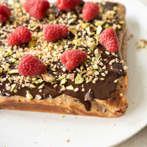 Kagen får en lækker, blød krumme og toppes med smeltet mørk chokolade, friske hindbær og sprøde pistacienødder. Kombinationen er ærligt talt lidt vanedannende. Alt du skal bruge er en blender og en ovn – så har du denne lækre kage med hytteost klar.