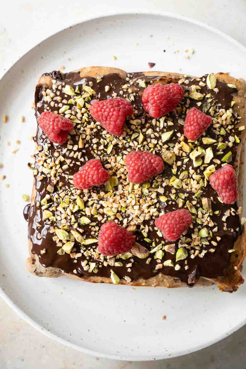 - Fordel det med en kniv og pynt kagen med hindbær og pistacienødder.