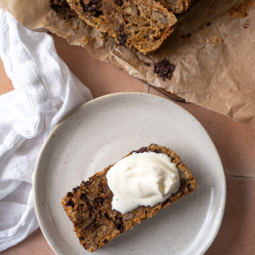 Græskarbrød med chokolade er en krydret kage med græskar, som smager helt fantastisk! Den er utrolig nem at bage og kan spises som den er, eller med smør på – eller endda lidt flødeskum til.