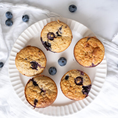 Herhjemme elsker vi muffins! Især de muffins, som er sødet med dadler og derfor er perfekte til madpakken. Disse muffins med dadler, blåbær, havregryn og græsk yoghurt er ingen undtagelse.