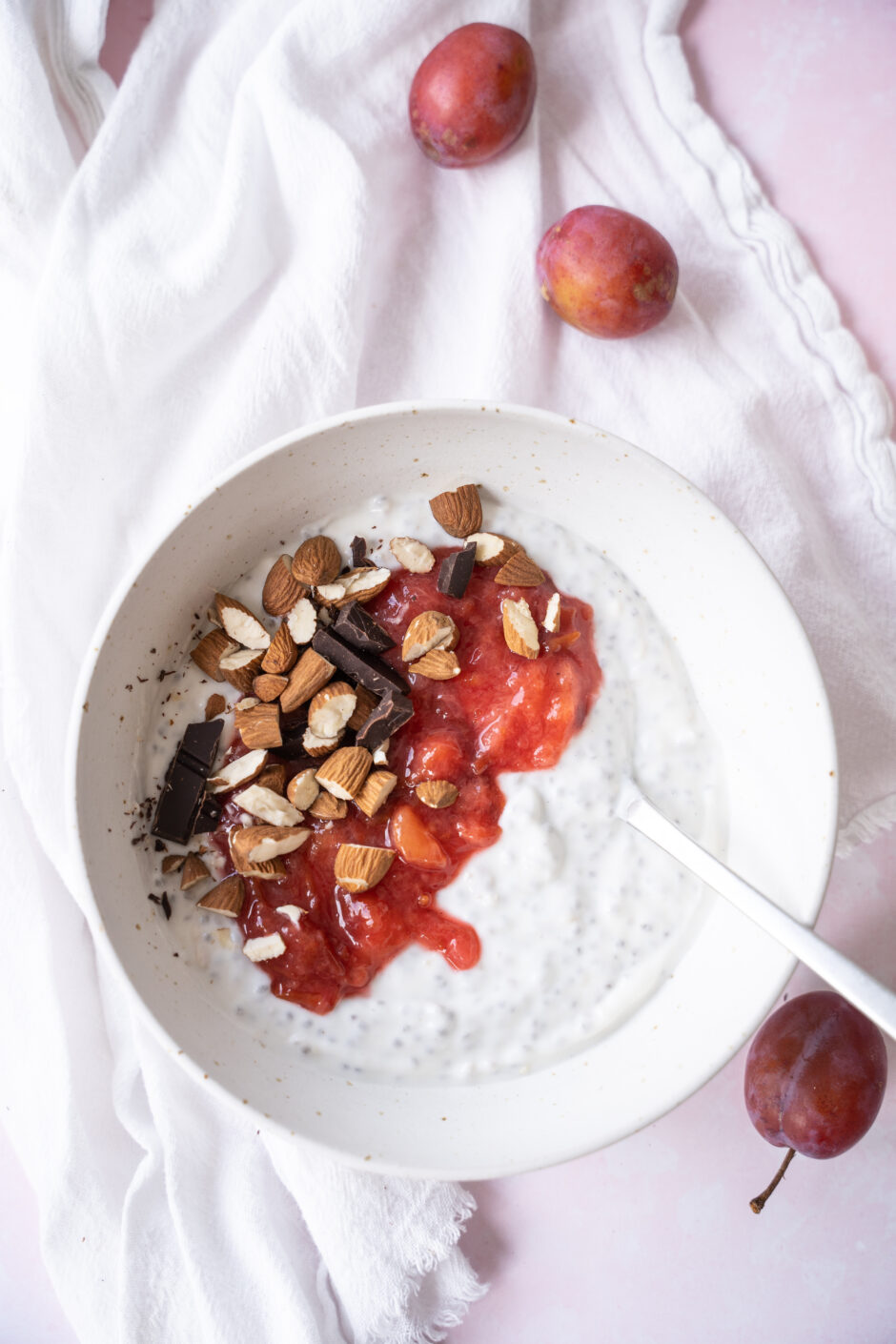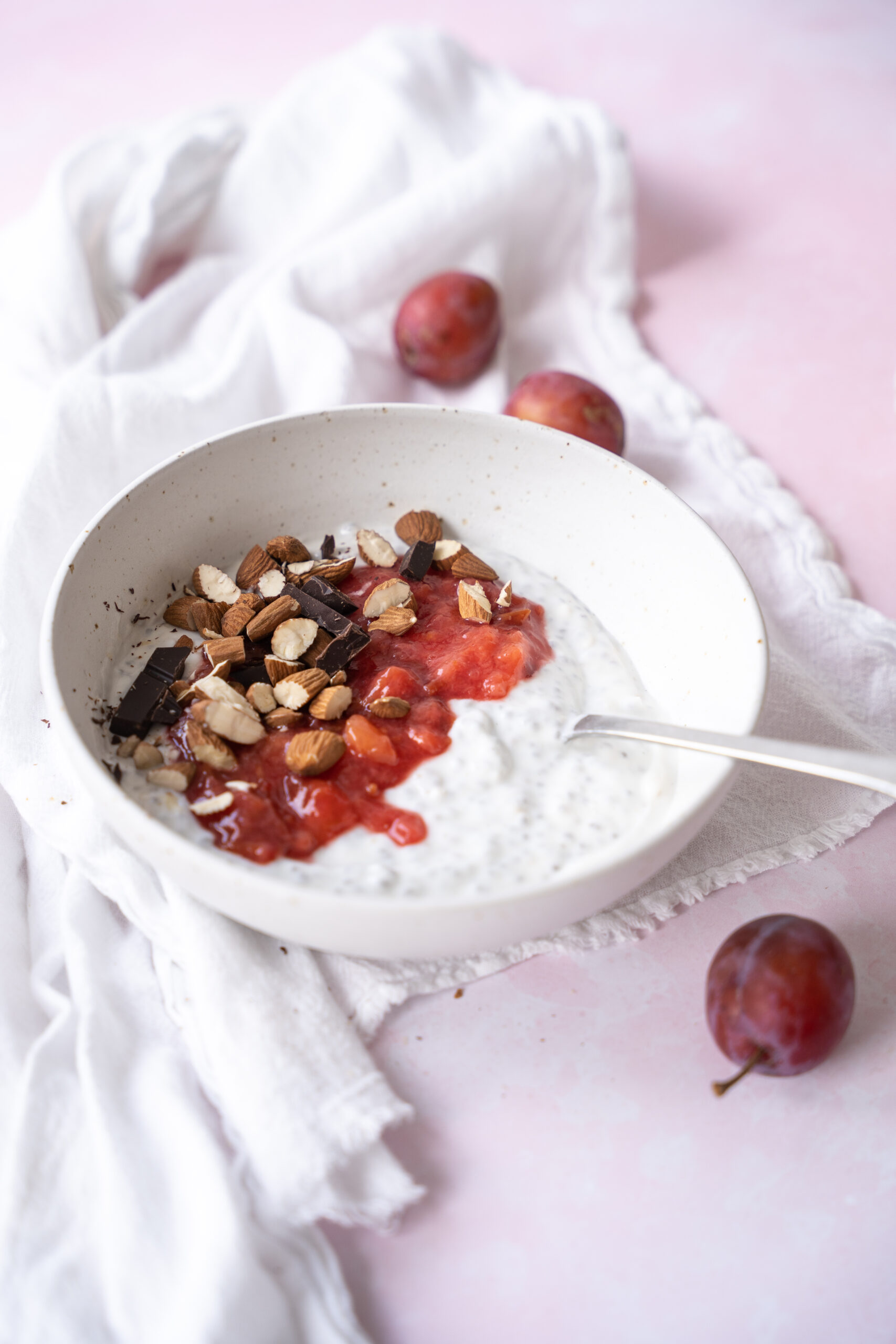 Blommekompot er den skønneste kompot med blommer og vanilje. Det er utrolig nemt at lave og smager helt fantastisk som topping på morgenmaden.