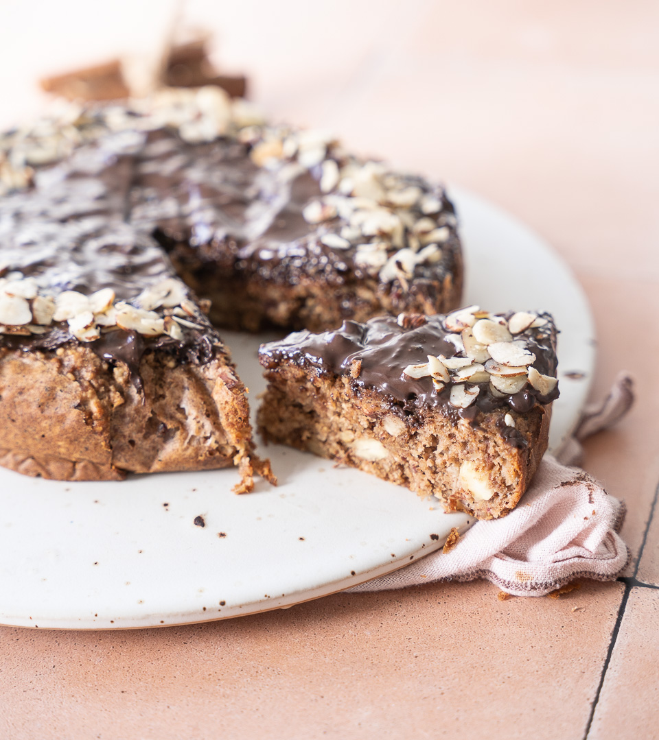 Denne kage leder tankerne hen på jul, med sine smage af kanel, nødder og kardemomme. Men den er ligeså lækker en kold efterårsdag – eller endda hele året. Jeg har valgt at kalde den for en sundere kage, da den er sødet med dadler og er fyldt med andre skønne mættende ingredienser, såsom mandler, valnødder, æg og havregryn.
